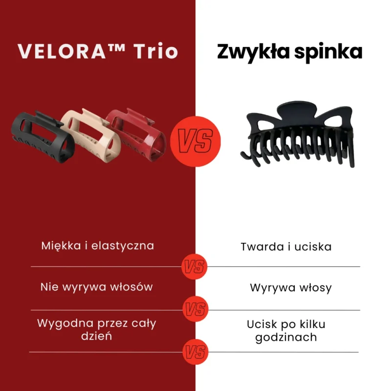 Zestaw obejmuje 3 kolory: czarny, czerwony i beżowy — dzięki czemu możesz dopasować spinkę do codziennej stylizacji lub okazji.